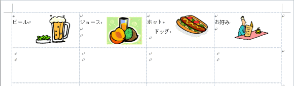 ここではデザインの関係から半券の境界線を明示するためにセルを分割しましたが、チケットのデザインにこだわらないで適当に文字などを配置する場合は、「セルの分割」をせずにそのままでもかまいません。